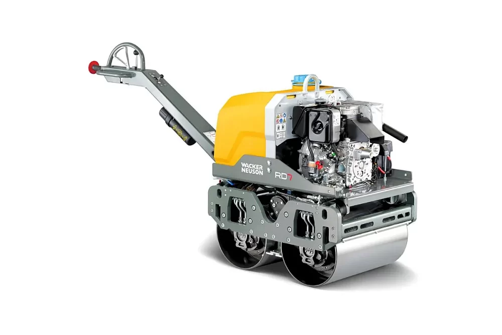 Ručně vedený dvojitý vibrační válec RD7 poskytuje výjimečný výkon při hutnění zeminy i asfaltu – díky optimálně nastavené frekvenci a dvěma úrovním vibrací. Válec také zaujme ergonomicky uspořádanými ovládacími prvky, jako je regulace otáček namontovaná přímo na oji. Snadný přístup ke všem servisním bodům bez použití nářadí navíc činí z RD7 přímočaré a cenově výhodné řešení pro jakékoli staveniště.